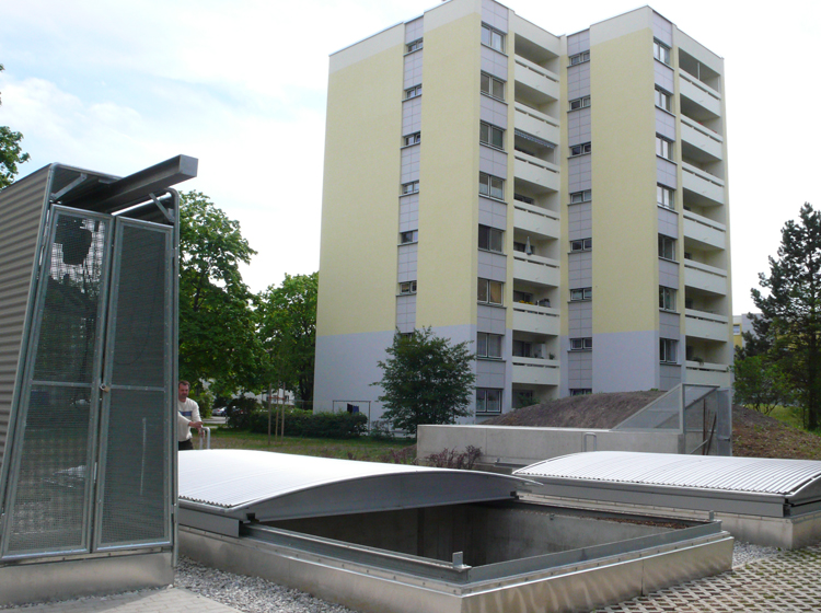 Die 242 Wohneinheiten in 18 Häusern auf 14.900 m² Wohnfläche werden aus einer gemeinsamen Heizentrale mit Wärme versorgt. Dank Hackschnitzel geringe und stabile Verbrauchskosten und KfW Effizienzhaus 70 Standard; Förderung über KfW und das Land Bayern.